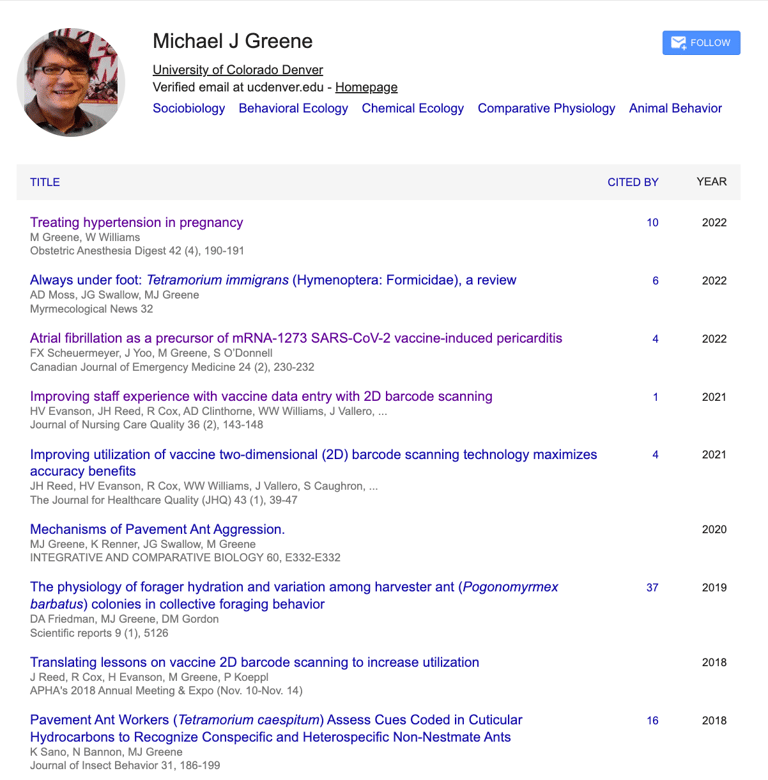 In academic publishing, the integrity of authorship is a cornerstone of ethical research practice. Prof. Michael Greene, Chair of the Department of Integrative Biology, has an overstated publication record on Google Scholar by including publications authored by scholars who share his name. About half the publications listed on Prof. Greene's Google Scholar page were not written by him.